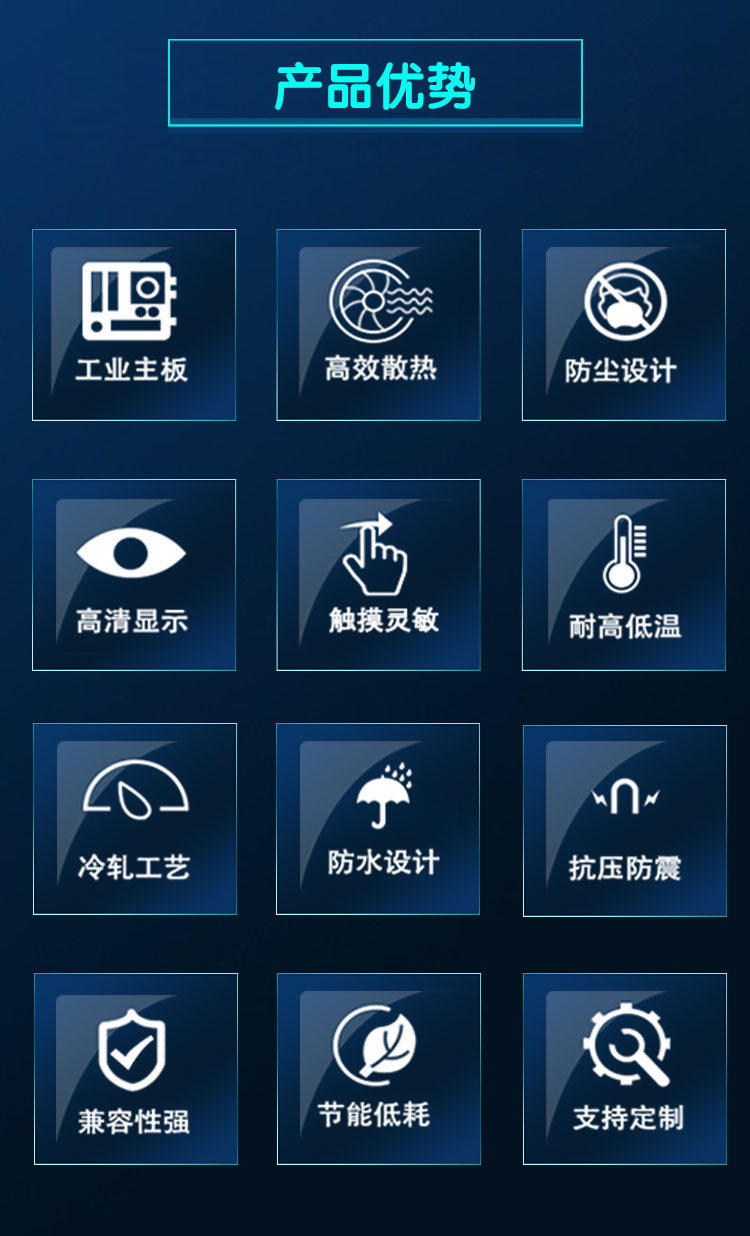 1. 前面板采用铝合金拉丝(钣金)型材,具备优良的抗震性和抗冲击性能。