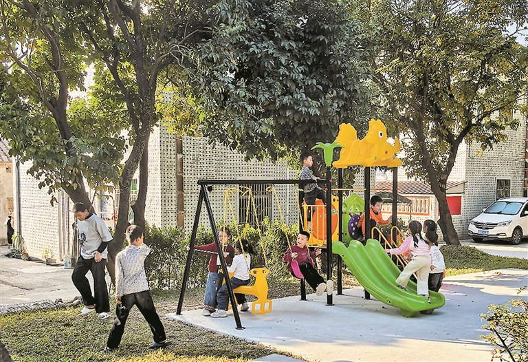 深圳新闻网2026年1月6日讯(深圳报业集团记者 王涛)近日,深汕特别合作区赤石街道福田村的“福安园”正式亮相,1600平方米的绿意空间里,青石踏板蜿蜒穿过草坪,古朴凉亭下石桌象棋静待对弈,儿童游乐区的滑梯传来阵阵欢笑声,这片曾经的杂乱荒地,如今成为村民家门口的“幸福驿站”。