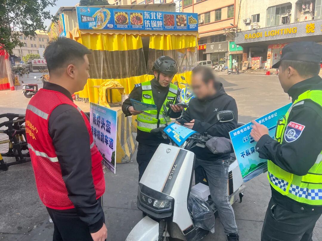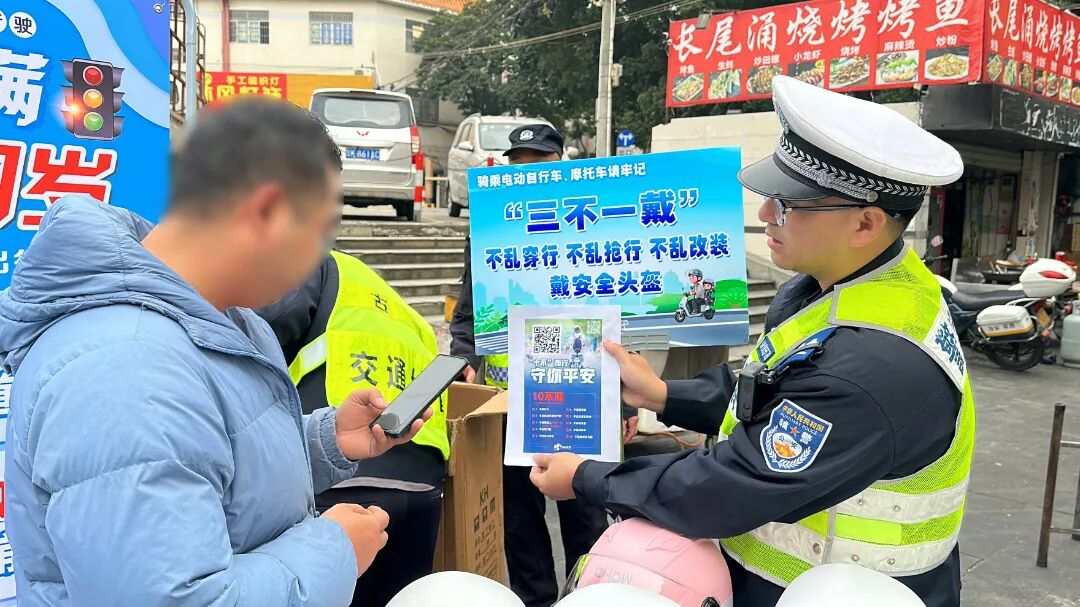 1月20日,交警大队联合村居劝导员、志愿者、义警等多方力量开展“电摩”交通安全劝导宣传活动,通过劝导警示、举牌宣传、组织观看警示海报及视频、赠盔引导等方式,掀起全镇电摩安全宣传劝导高潮,让群众自我教育、相互警示,切实提升群众安全骑行意识。据悉,当天宣传活动共计劝导教育电摩违法人员148名,送出安全头盔80余顶。