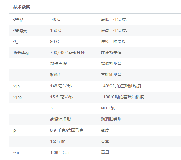 应用:用于最高达+90°C 连续极限温度的应用的耐高温润滑脂