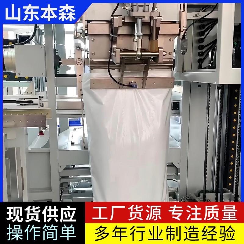 山东本森智能装备 增韧剂高速上袋包装机是一款集自动上袋、称重、灌装、封口等功能于一体的智能化设备,专为增韧剂等颗粒状或粉状物料设计。该设备通过真空吸盘或机械臂从袋库中精准取袋,完成拉袋、夹袋动作,适配PP袋、PE袋、覆膜蛇皮袋等多种包材,实现全流程自动化包装,减少人工干预,提高生产效率。